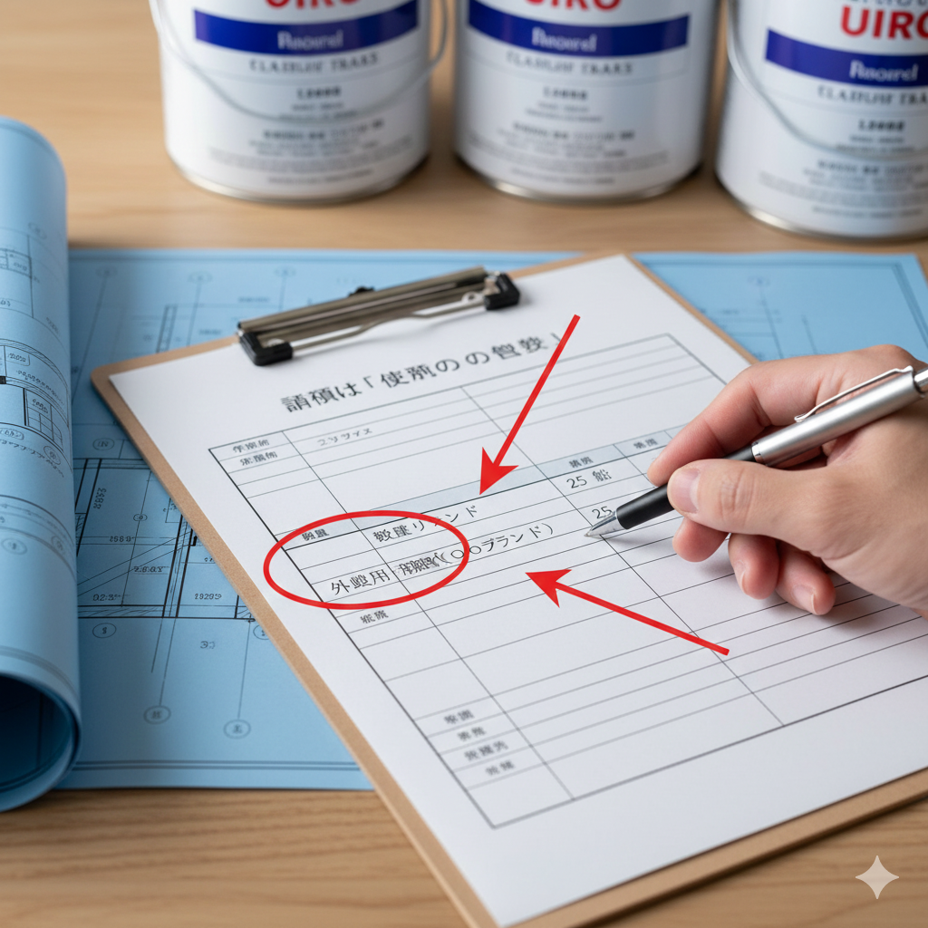 **「使用塗料の缶数」**が明記されているか確認しましょう。