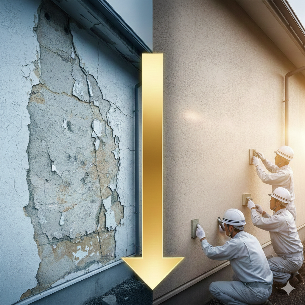 塗装作業に入る前の**「下地補修」**こそが、工事の成否を分けます。