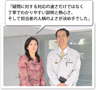 「名前も住所もなしの状態から丁寧に説明してくれること、しかも一級施工管理士の資格を持ち、現場の話がきちんとできたこと」に信頼を覚えたという。