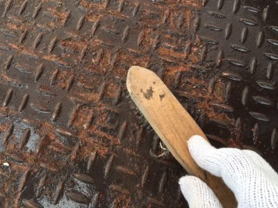 錆びた部分をブラシでキレイにします。