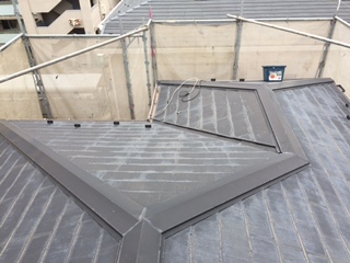 新しい屋根材を取付け、雪止めを設置します。