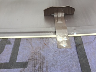棟部分に下地となる貫板をビス止め固定をし貼ります。強風の影響により浮いたり剥がれたりしないよう強固に止めます。棟板金のジョイント部にはシーリングを入れてから板金を被せます。