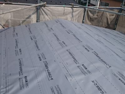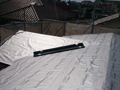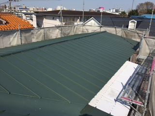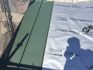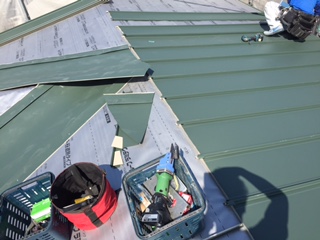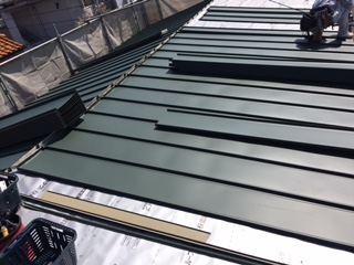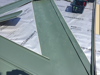 防水シートを設置したあとに新しい屋根材(縦ハゼ葺き)を取り付けます。