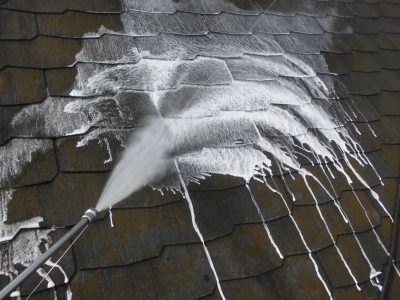 屋根の高圧バイオ洗浄作業