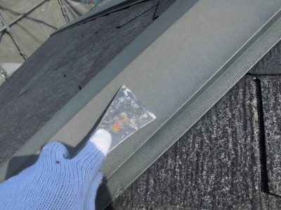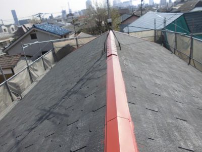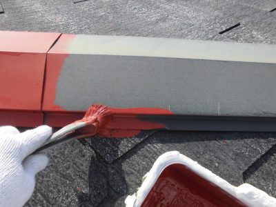 屋根の棟板金錆止め塗装