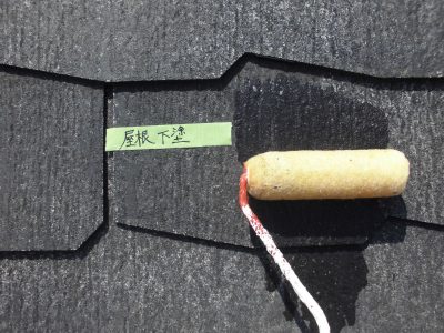 屋根の下塗り作業後