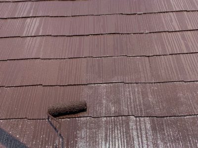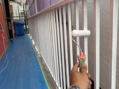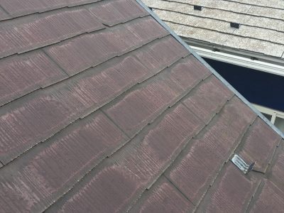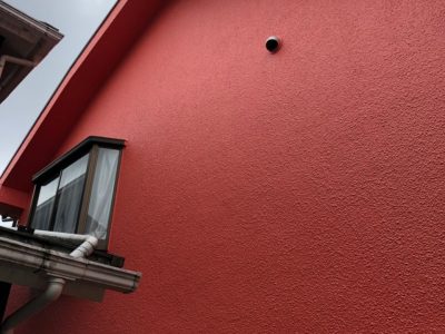 台風の影響で破損した屋根の部分補修をしたとのことで、破損してない部分の屋根塗装のご依頼をいただきました。ちょうど外壁のメンテナンスの時期ということもあり、屋根塗装の工事で足場を建てるので外壁塗装も施工することになりました。白い外壁からガイソーの70-60Tに塗り替え、とても鮮やかなピンクで明るくキレイになりました。