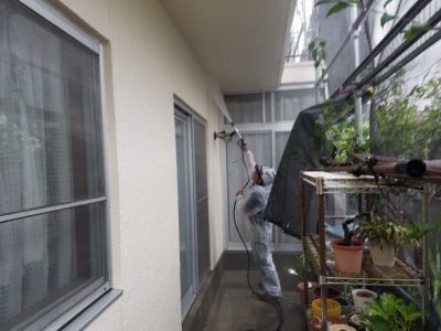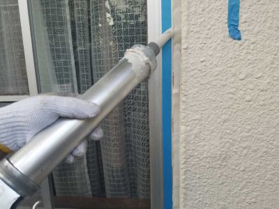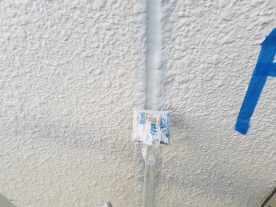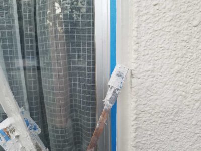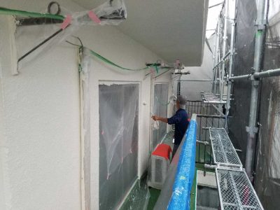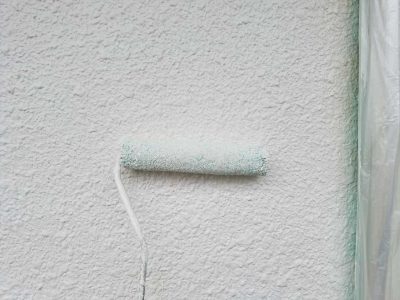 3回目に塗る仕上げ塗装です。塗料によって決まっている標準塗布量や乾燥時間をしっかりと守ることにより、強い塗膜を作ります。ローラーが使えない狭い箇所などは、ハケでしっかりと塗り込みます。同じ塗料を使用しても、塗り方によって耐久性が全く違ってきます!