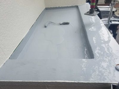 ウレタン防水主材は2回塗りで規定塗布量を塗ります。