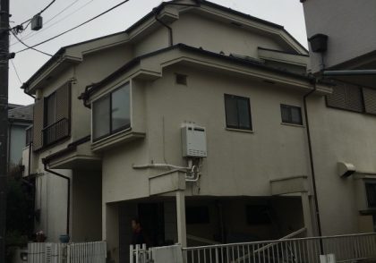 モルタル外壁塗装 コロニアル屋根塗装 板金笠木塗装 風災屋根 塗装前の下地補修と板金棟交換で建物を長持ち