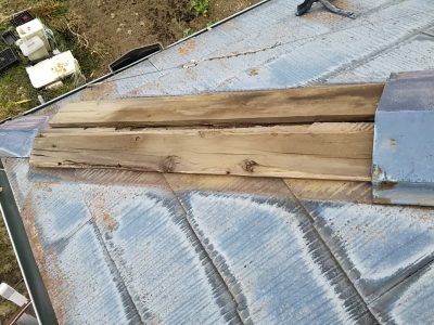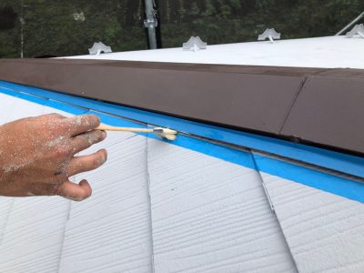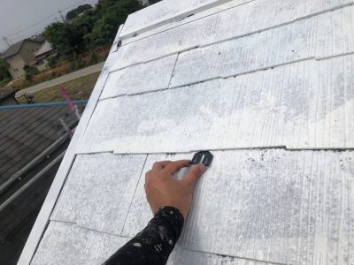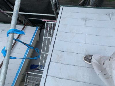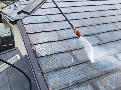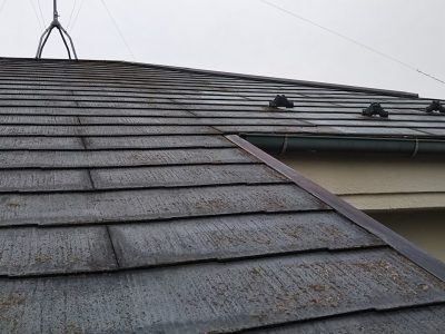 紫外線や経年劣化で外壁はチョーキングや所々クラックが見受けられ、屋根は塗膜が剥がれさらに台風の影響で屋根の一部は欠けていて、棟板金は一部剥がれている状態でした。洗浄後、外壁クラック補修、屋根は欠けた部分の補修や棟板金の交換等で土台をしっかり固めていき、塗装作業で建物を長持ちさせます。