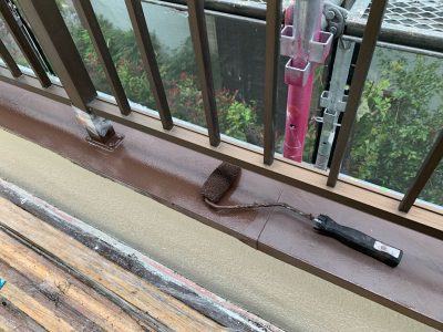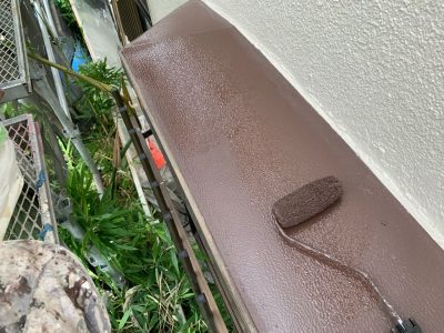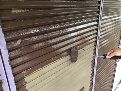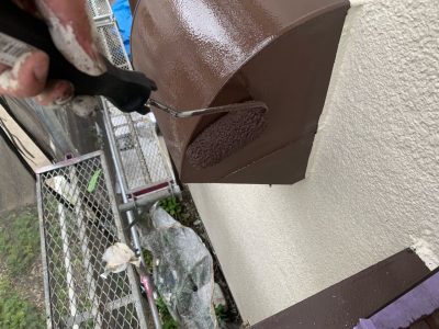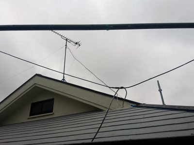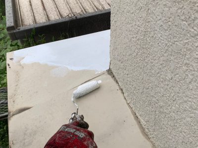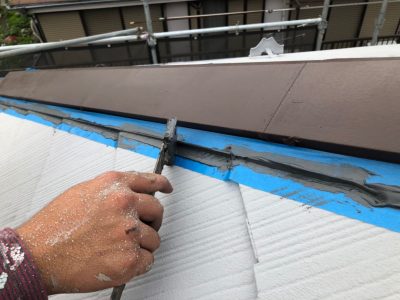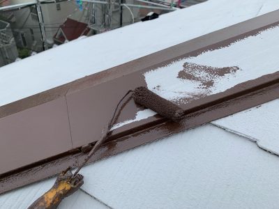 モルタル外壁塗装 コロニアル屋根塗装 板金笠木塗装 風災屋根 塗装前の下地補修と板金棟交換で建物を長持ち
