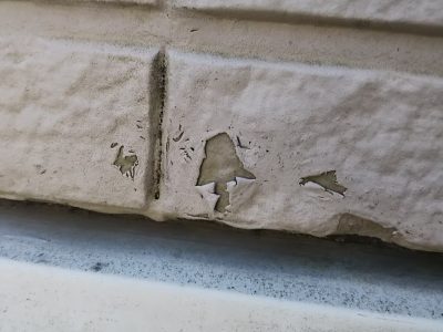 今回雨漏り等の不具合はありませんが紫外線による経年劣化で、全体的に塗膜の剥がれや汚れ、チョーキング現象の進行が見受けられました。このまま放置しておくとさらに劣化が進行する状態でした。遮熱・断熱性に優れたガイナ塗料で早めの段階で塗装工事を行い、建物の寿命を延ばしていき外断熱で暮らしを快適にします。