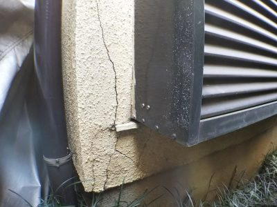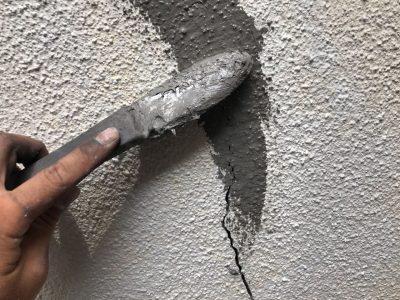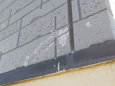 全体的に、外壁は経年劣化によるクラックとチョーキングが主に見受けられます。バイオ高圧洗浄で汚れを落とし、クラックをシーリング材で補修して塗装する必要があります。屋根は紫外線による劣化がひどく進み、棟板金の釘が数か所浮いている状態です。下地の補修や板金交換でしっかりと下積みをして塗装で建物の長持ちさせていきます。