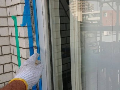 窓まわりシール打ち替え 既存シール撤去~プライマー塗布