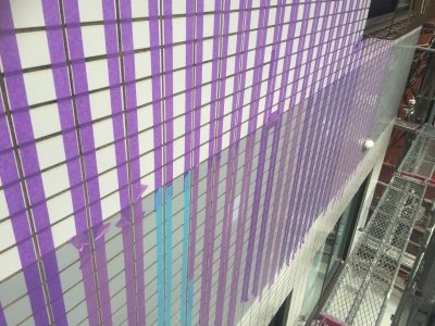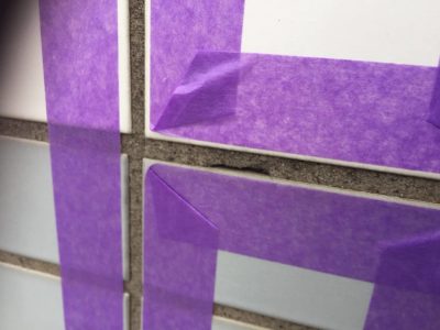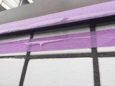 タイル目地シーリングの際、タイルにシール材が触れないよう目地まわりに養生を施します。