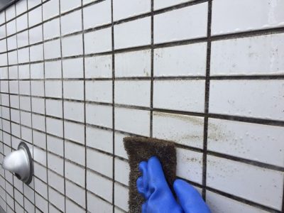 酸洗い(手洗い)でタイルの表面の表面についている汚れを落とします。