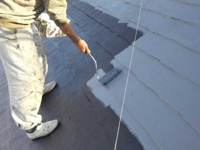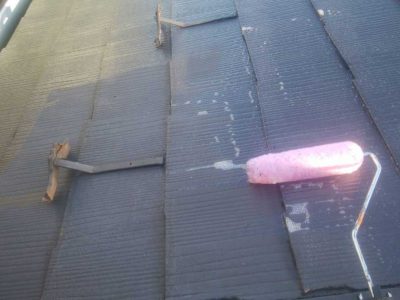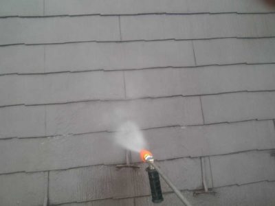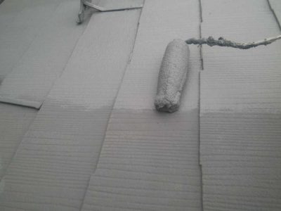 汚れをしっかり落として、屋根塗装に入ります。屋根は3回重ねで塗装します。