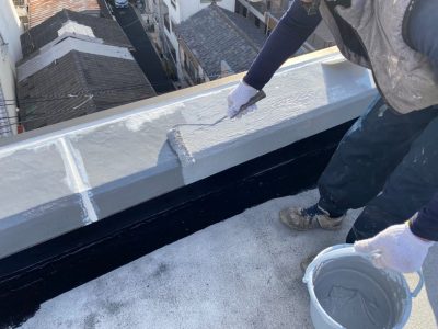 パラペット ウレタン防水密着工法 トップコート塗布