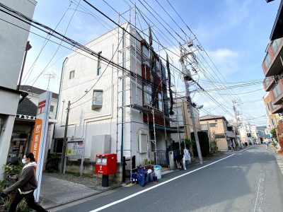 外壁タイル目地 シーリング 雨漏り修理 散水調査 部分足場組立 タイル面高圧洗浄、タイル酸洗洗浄(手洗い) シーリング打ち替え(窓周り) 豊島区千早K様