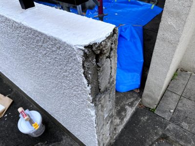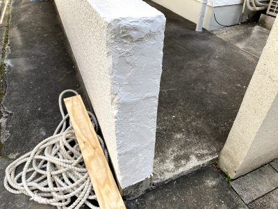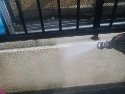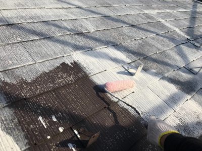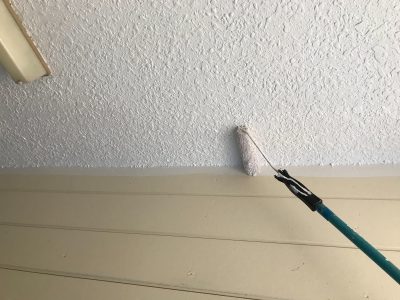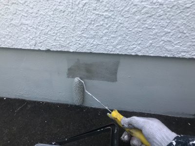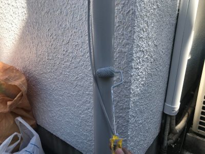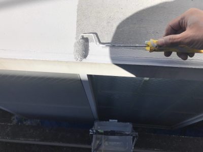ローラーが使えない狭い箇所などは、ハケでしっかりと塗り込みます。同じ塗料を使用しても、塗り方によって耐久性が全く違ってきます!