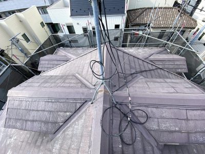 雨樋の付いていない破風部分は屋根からの雨水が流れるので同様にしっかりと塗装をします。