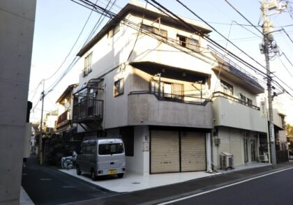 鉄骨ALC建物 躯体補修 階段塗装 モルタル補修 斜壁鉄骨ALC撤去 板金笠木設置+出隅シーリング 外壁塗装 錆びた鉄骨階段塗装 鉄骨溶接補強 板橋区仲宿N様