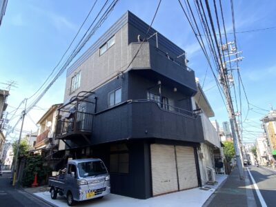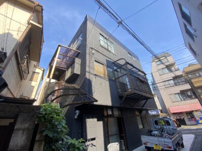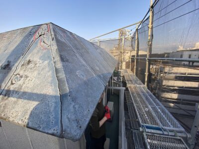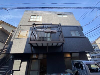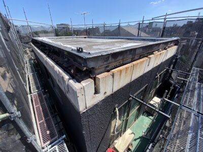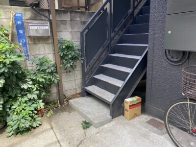 鉄骨ALC建物 躯体補修 階段塗装 モルタル補修 斜壁鉄骨ALC撤去 板金笠木設置+出隅シーリング 外壁塗装 錆びた鉄骨階段塗装 鉄骨溶接補強 板橋区仲宿N様