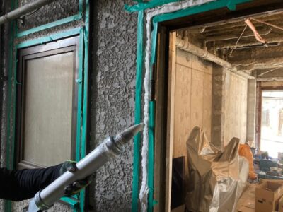 目地部にはシーリングを打って動的追従性にも優れた対応性を発揮します。ALCパネルのジョイントなどは大きな動きが発生するので、シーリング目地を有効活用します。