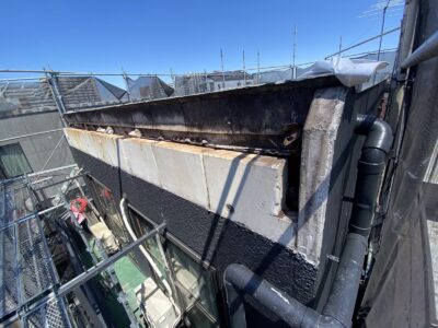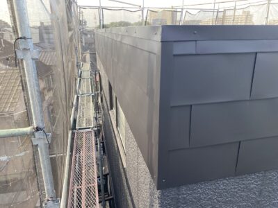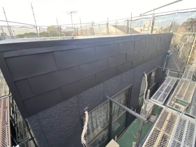外壁パラペットの完成した外観です。とても良い仕上がりになりました。