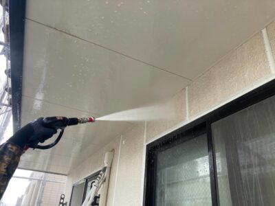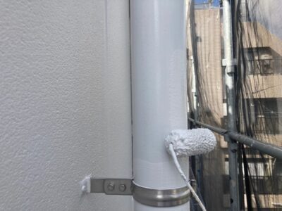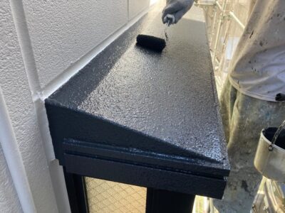 3回目に塗る仕上げ塗装です。塗料によって決まっている標準塗布量や乾燥時間をしっかりと守ることにより、強い塗膜を作ります。ローラーが使えない狭い箇所などは、ハケでしっかりと塗り込みます。同じ塗料を使用しても、塗り方によって耐久性が全く違ってきます!