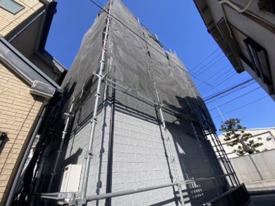 細部までしっかり確認後、養生を剥がして足場を解体しました。家全体と近隣の清掃をして工事の完成です。