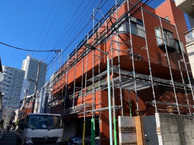 鉄骨ALC建物 劣化躯体樹脂モルタル補修 外壁塗装 クラックエポキシ樹脂注入補修 タイル貼り替え アルミ手摺笠木シール 豊島区東池袋Yビル