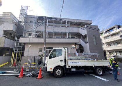 鉄筋コンクリート建物 外壁塗装 劣化調査 躯体補修 クラック補修 爆裂樹脂モルタル補修 浮き部エポキシ樹脂注入 鉄部塗装 新宿区高田馬場Uマンション