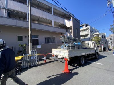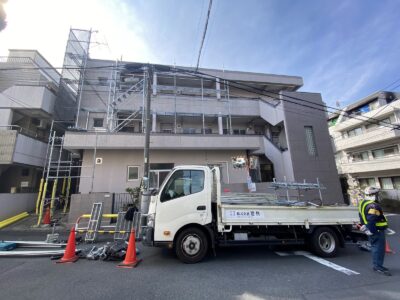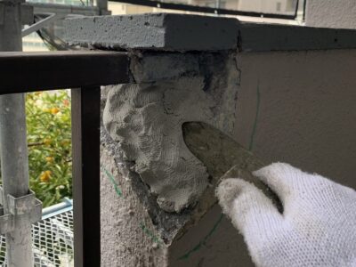 鉄筋コンクリート建物 外壁塗装 劣化調査 躯体補修 クラック補修 爆裂樹脂モルタル補修 浮き部エポキシ樹脂注入 鉄部塗装 新宿区高田馬場Uマンション