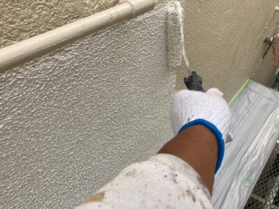 ムラ無く隅々まで丁寧に塗ります。塗料によって決まっている標準塗布量や乾燥時間をしっかりと守ることにより、強い塗膜を作ります。ローラーが使えない狭い箇所などは、ハケでしっかりと塗り込みます。同じ塗料を使用しても、塗り方によって耐久性が全く違ってきます。