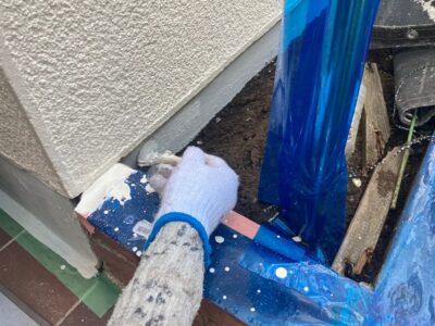 同じく窓開口部下部に発生しているクラックも防水処理を行います。