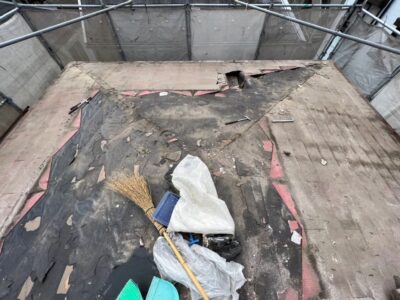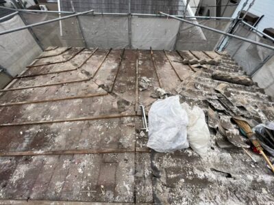 既存のスレート屋根とかわらU屋根材をすべて撤去しました。