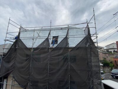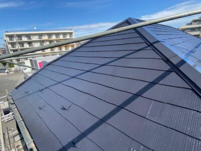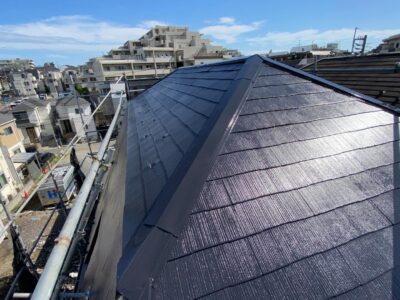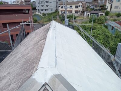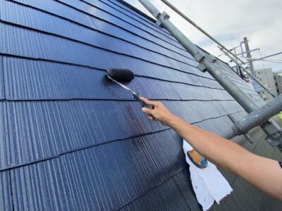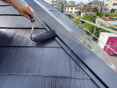 屋根上塗りは仕上げ塗装になります。