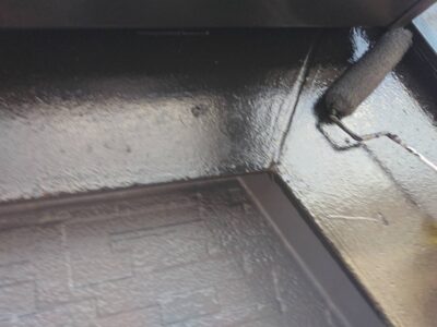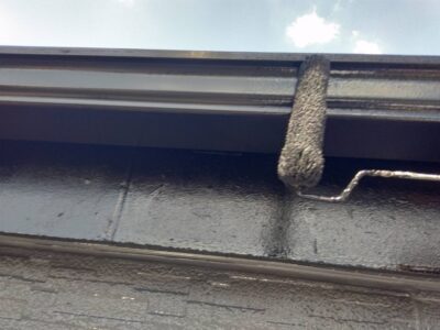 コロニアル屋根は外壁と違い筋状の凹凸があり溝内までしっかりと塗り込みます。