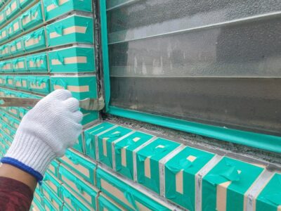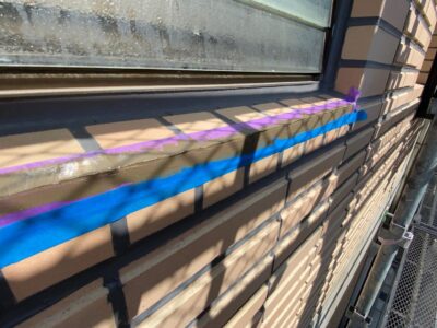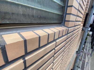 サッシ下のタイル出隅部分のシール打ちが完了しました。