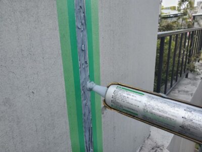 また、従来品と比べ動的追従性にも優れる為、サイディングパネルのジョイントなどの動きの大きな目地への使用にも適しています。耐久性区分10030相当(JIS耐久性区分に10030の規定がないため相当と記載)30年超耐久シーリング材です。窪まないように注意しながら平滑に均し、シーリング断面を確保します。