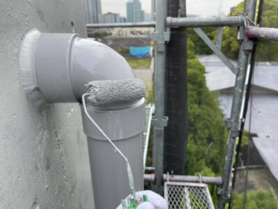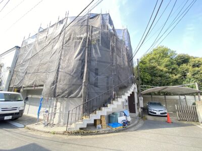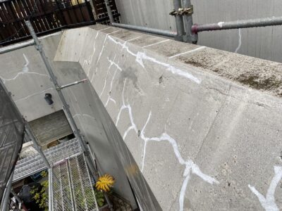 鉄筋コンクリート建物 外壁塗装 コンクリート打ち放し素地塗装 クラック躯体補修 エポキシ樹脂注入シーリング モルタル左官塗り補修 鉄手摺塗装 雨漏り止め 港区南麻布O様