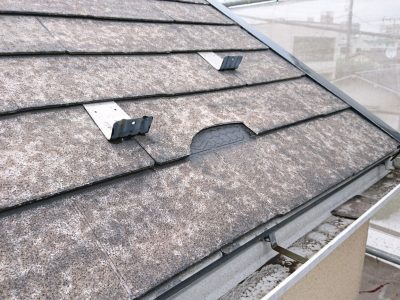 既存スレート屋根破損状況