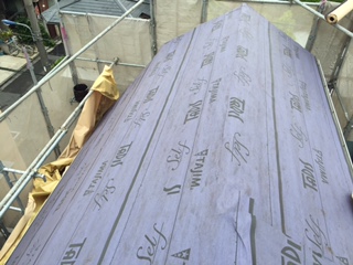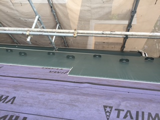 スレート屋根風災改修工事 防水シート 横暖ルーフプレミアムS(カバー工法)雪止め取付け
