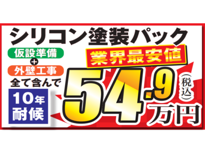 外壁塗装リフォーム 足場組立 養生シート 付帯部塗装 基礎塗装 全て含んで54.9万円 シリコン塗装パック10年耐久