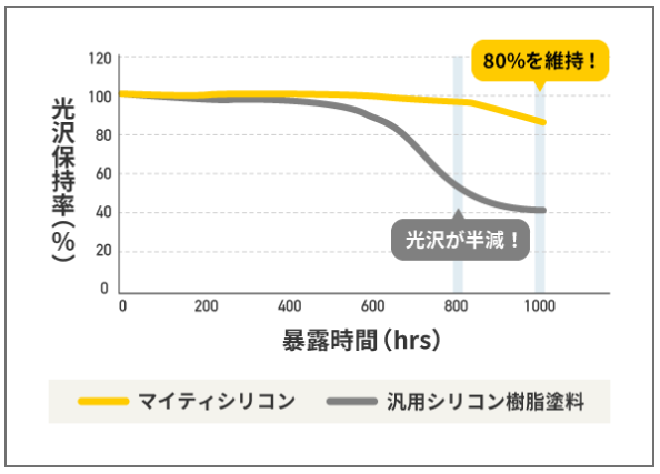 ガイソーウォールマイティシリコン塗料は紫外線の影響を受けにくく高い耐候性があり、チョーキング現象抑制効果で長期に渡って建物の美観を保つことができます。