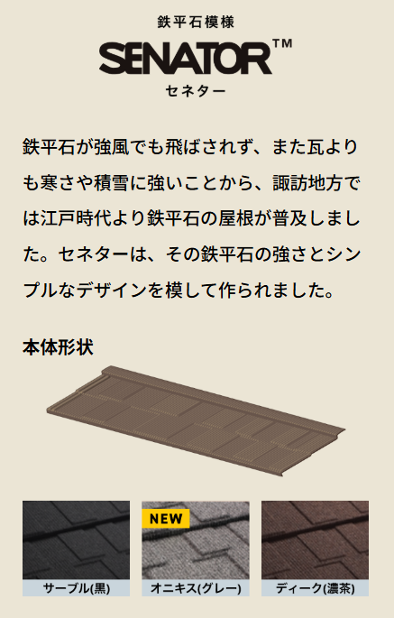 雪止めの金具同等の効果のある屋根材として札幌市建築確認課で認められた屋根材なので、