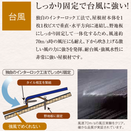 風の力に強さを発揮。耐台風・強風水性に非常に強い屋根材です。