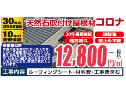 屋根工事 カバー工法 リフォーム 天然石吹付け屋根材料コロナ・セネター 30年材料品質保証 10年美観保証 ガルバリウム鋼板屋根材